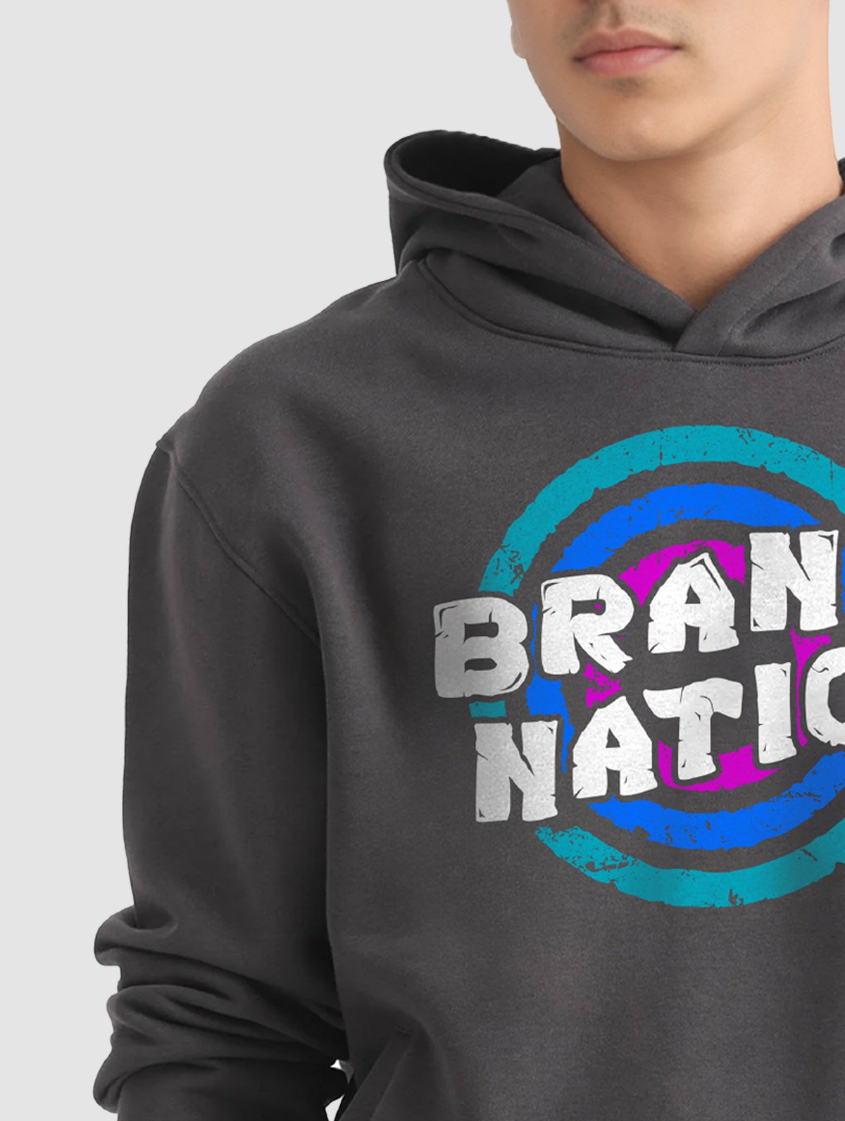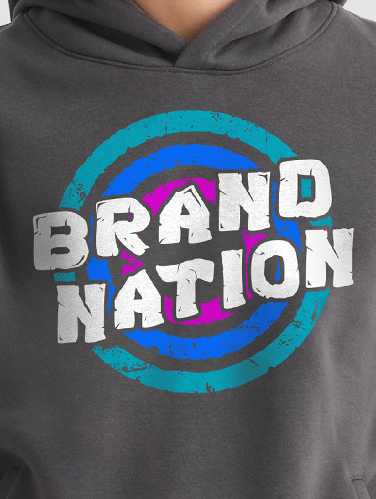 The Men's Pullover Hoodie is designed for style and comfort, featuring a bold single-color Brand Nation graphic printed using durable plastisol ink through high-quality screen printing. Crafted for men who value both practicality and style, this hoodie is perfect for casual outings or layering during cooler weather. The soft fabric ensures a cozy feel, while the detailed graphic adds a striking touch to your wardrobe. A classic pullover design with a drawstring hood and kangaroo pocket enhances functionality. Pair it with jeans or joggers for a versatile, everyday look that's both effortless a