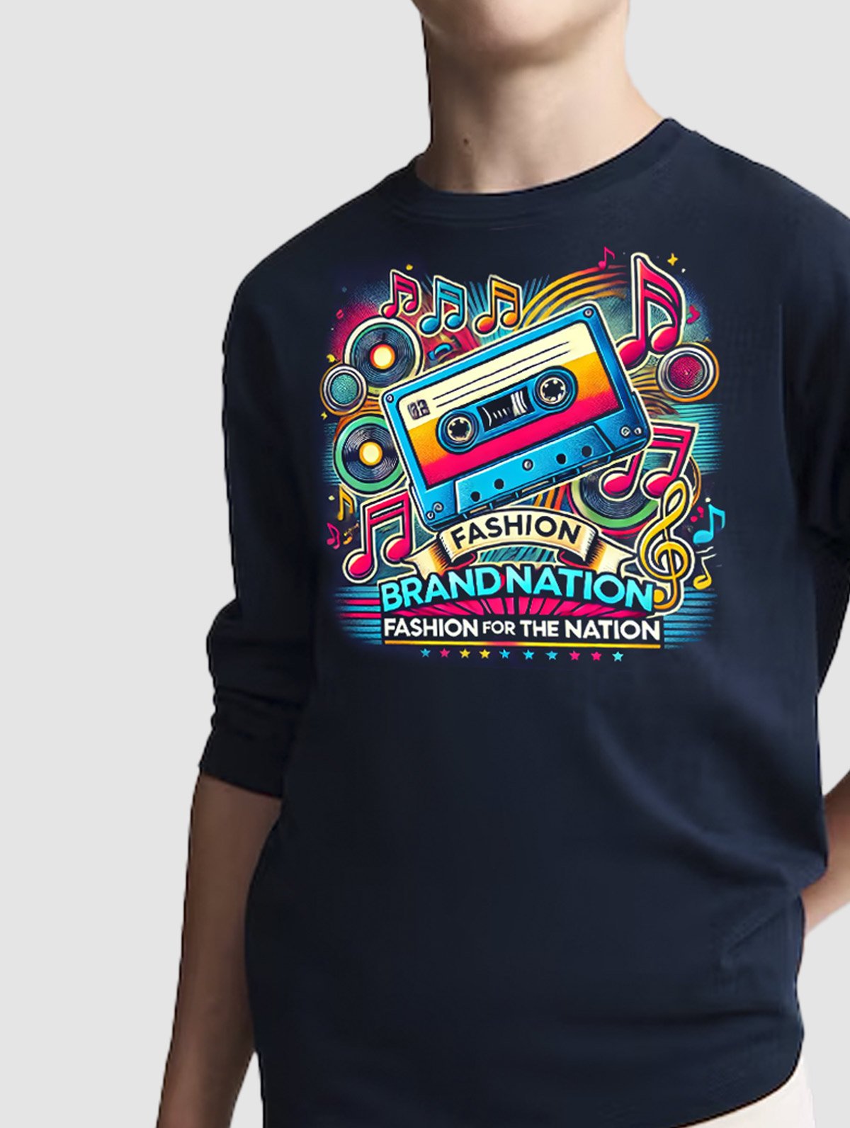 Let your child’s style hit the right notes with the Retro Music Long Sleeve Kids Tee. Featuring a striking cassette and music-themed Brand Nation print, this tee is made from premium, breathable cotton for all-day comfort. Perfect for music lovers and those who enjoy bold and colorful designs, it’s ideal for casual outings, school, or lounging.