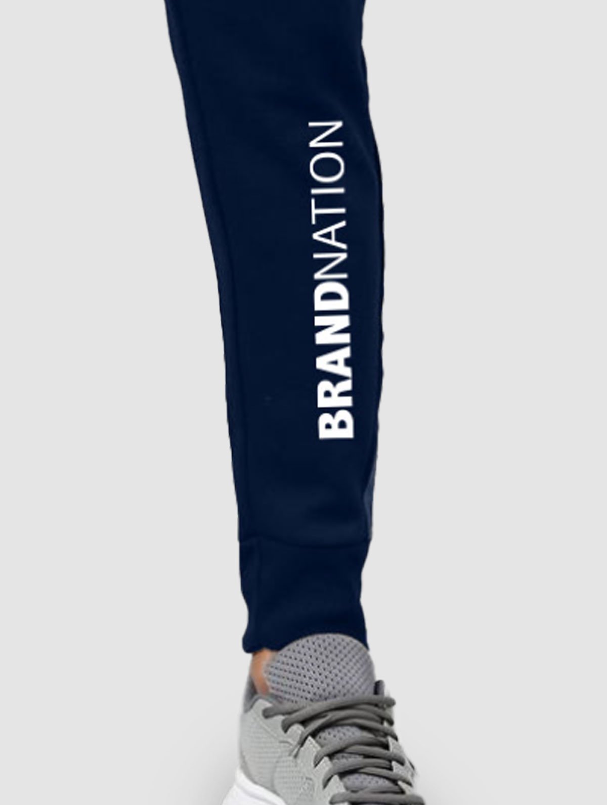The Brand Nation Navy Blue Joggers combine functionality and style for your everyday activities. Made with soft and breathable fabric, these joggers ensure maximum comfort throughout the day. Featuring the Brand Nation logo and text, screen printed using high-quality plastic sol ink, the design is vibrant and durable. The joggers include an elastic waistband with an adjustable drawstring for a perfect fit, along with side pockets for convenience. Whether you’re hitting the gym, going for a walk, or relaxing at home, these joggers provide a sleek and trendy look.