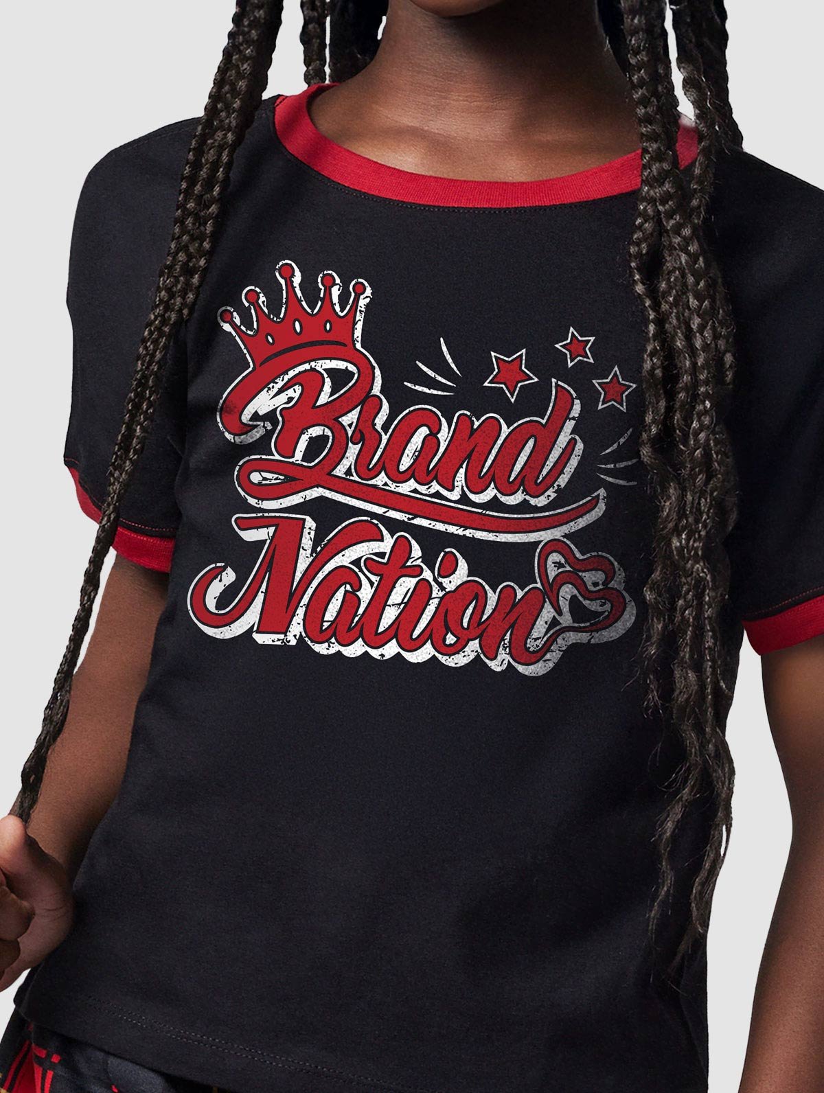 - Glitter “Brand Nation” logo with a crown and star details for a glamorous look.