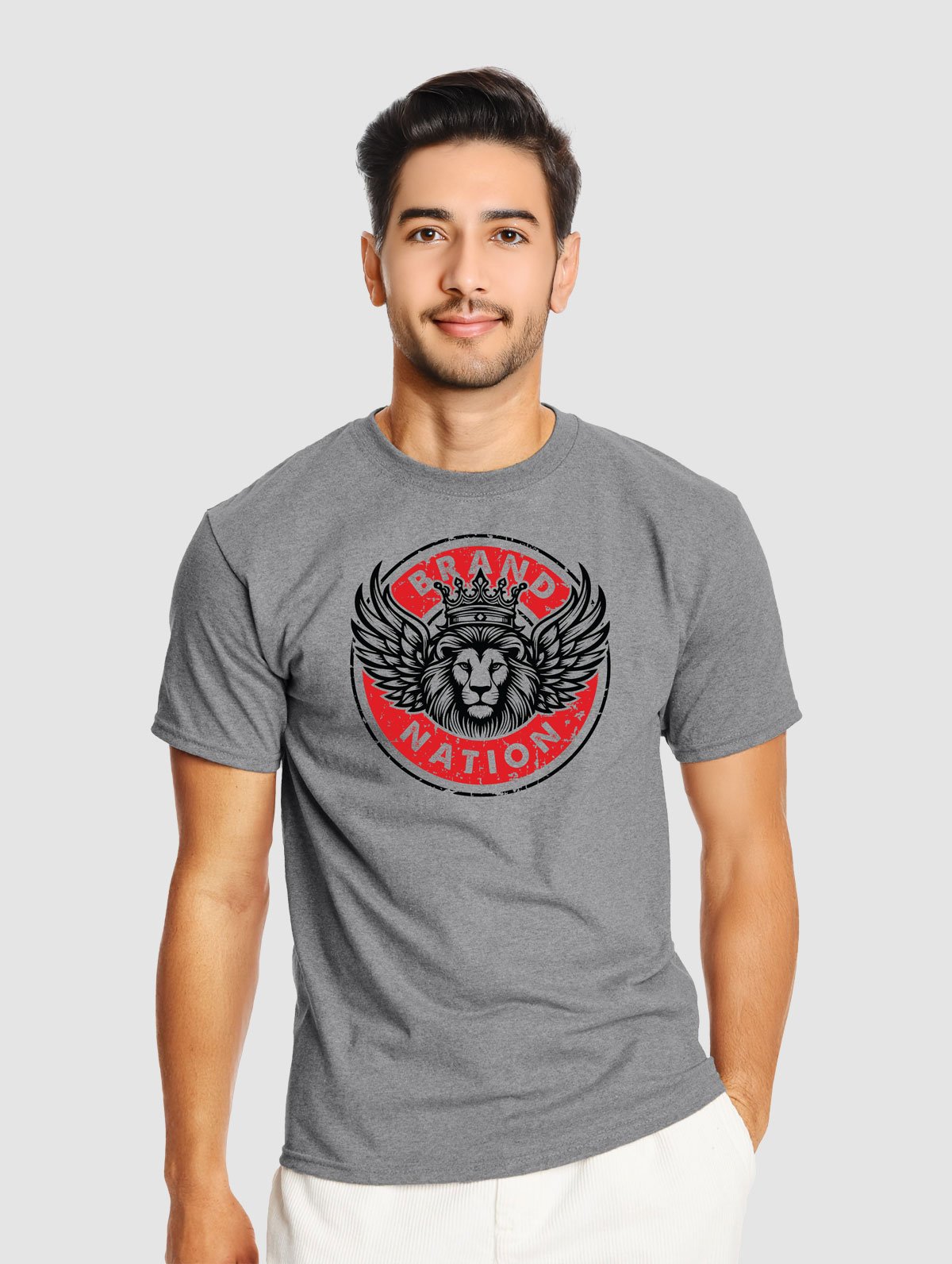 Step up your fashion game with this dynamic round neck t-shirt, designed to make a statement. The striking lion crest graphic symbolizes strength and individuality, while the soft fabric ensures exceptional comfort. Available in versatile white and grey, this t-shirt is ideal for casual outings or lounging at home. The modern fit and high-quality print make it a standout piece in any wardrobe. Pair it with jeans or shorts for an effortlessly cool look.